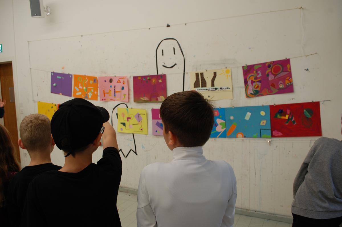 Nach der Mittagspause folgte der Höhepunkt des Tages im Kunstmuseum: eine Führung durch die Ausstellung und ein kreativer zweisprachiger Workshop. Zuerst wurden die Ausstellung besucht und  Farben, Formen und Emotionen von einigen Bildern diskutiert. Die Kinder betrachteten im Workshop und im Gespräch das Verhältnis von Emotionen und Farben - manchmal auf Deutsch, manchmal auf Französisch, oft in einem munteren Mischmasch. Danach konnten sie selbst aktiv werden und gestalteten eigene Kunstwerke, die am Ende wie eine farbenfrohe Mini-Ausstellung wirkten.